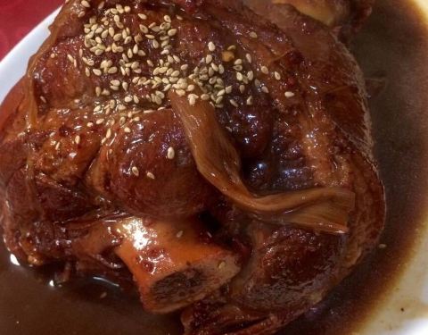 - ...深,炖的很软糯的肘子,又偏偏很嫩,外层的皮一点都不腻,咬起来还有芝麻的香,瘦肉一丝一丝特别入味