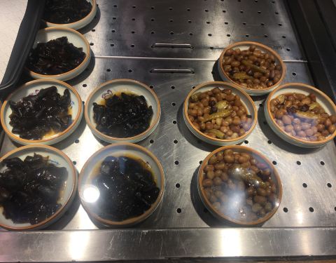 和府捞面在金山百联三楼,装饰很古风,除了捞面,还有很多小吃,有免费的玫瑰红茶供应。 儿子最喜欢酸汤雪花肥牛面和自家金玉炸虾。 古法烧饼、自家手工香肠、乾隆冰心蛋、超级猪蹄这些都是我最爱吃的,香肠除了油腻一点吃起来还是很香的、猪蹄煮的很烂,辣的带劲。冰心蛋不知道怎么煮出来的,吃起来蛋黄很软糯。 加入会员有优惠价,每次用餐都赠送一包纸巾,非常贴心,
