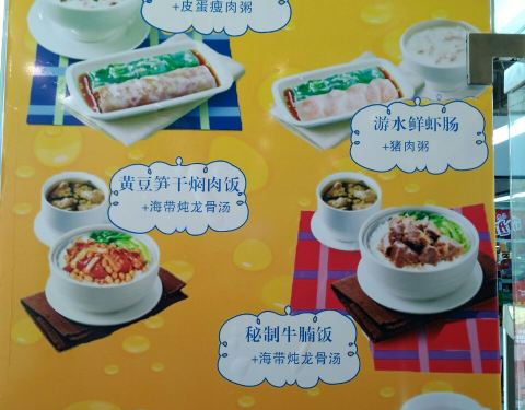 经常来这里吃,特色是肠粉,这次品尝的粥饭和汤,也是非常的不错,尤其是汤熬的很美味,就是总体价格偏贵了一点,希望套餐里面除了饭和汤,可以再加一点小菜,菜色偏少了一点,继续加油吧!