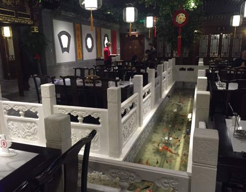 - 晚清时期的装修风格显得非常格局,大厅内有小桥流水锦鲤,用餐环境非常舒服