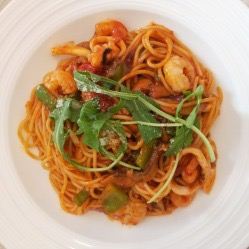海鲜烩饭好吃,提拉米苏也不错,别的还可以