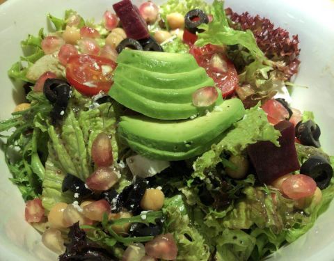 ...也都很好看,色拉摆盘很美,不过味道一般,毕竟没荤菜,都是素的,披萨好大好大一个,两个人吃撑了啦
