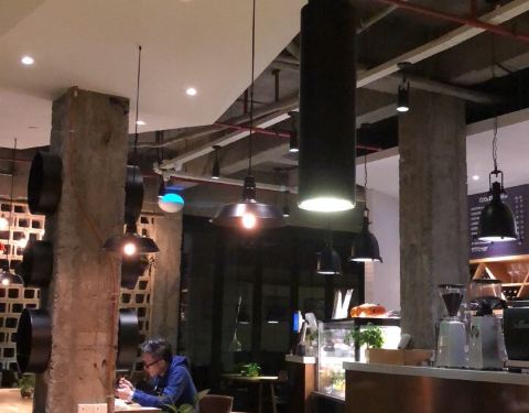 开在长寿路的智慧广场里,环境还是很美的,这是一家咖啡馆兼美式风格的小餐馆,菜品也都很好看,色拉摆盘很美,不过味道一般,毕竟没荤菜,都是素的,披萨好大好大一个,两个人吃撑了啦。下次再尝下咖啡吧,这次喝不下了。