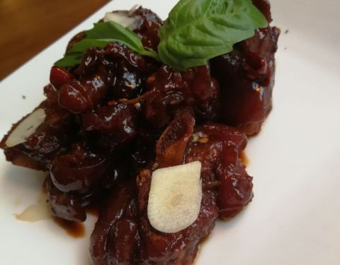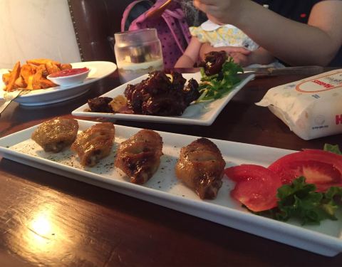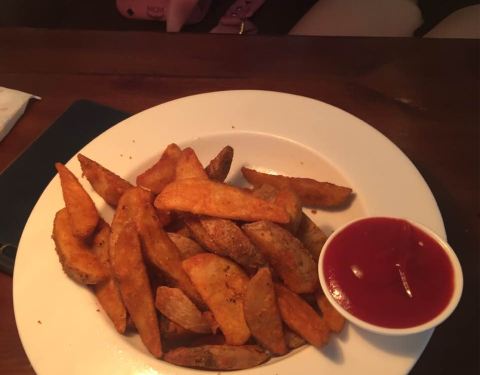 - ...,薯角出乎意料的好吃,猪蹄有些甜不过加了柠檬的味道很特别,鸡翅应该是加了孜然和黑椒嫩嫩的很不错