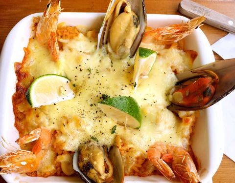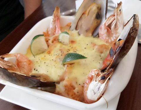 菜品感觉一般,只有彩虹沙拉有小惊艳,烟花意面,牛排,猪蹄都一般,海鲜焗饭简直难吃