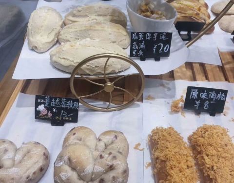 ...广场,这家面包店,听服务员小姐姐介绍说是一家连锁性质的,这边的面包种类真的超级多,看着就很诱人
