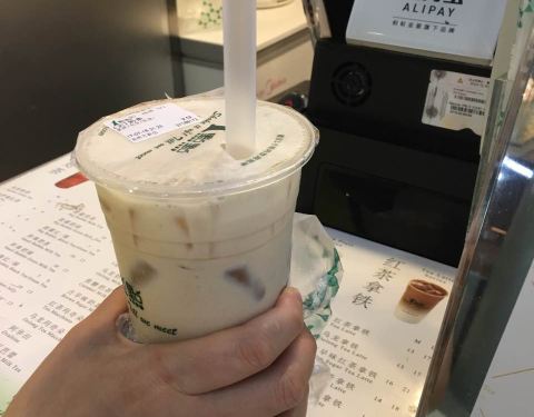 不是周末,人不是很多,终于买到心心念念的冰激凌红茶啦~