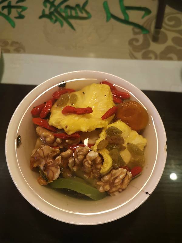 紧赶慢赶回到西宁,选了一家评分很高的特色美食店,吃到最后店里打烊。由于各种服务员的失误,大众点评好评,送了一堆葡萄干,枸杞,甜胚子奶茶什么的,满足😌狗浇尿,听起来很奇怪,但是味道格外好,酥脆的口感。秘制牛大骨牛蹄筋吧好像是