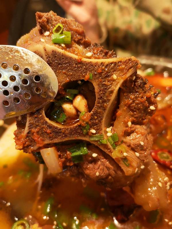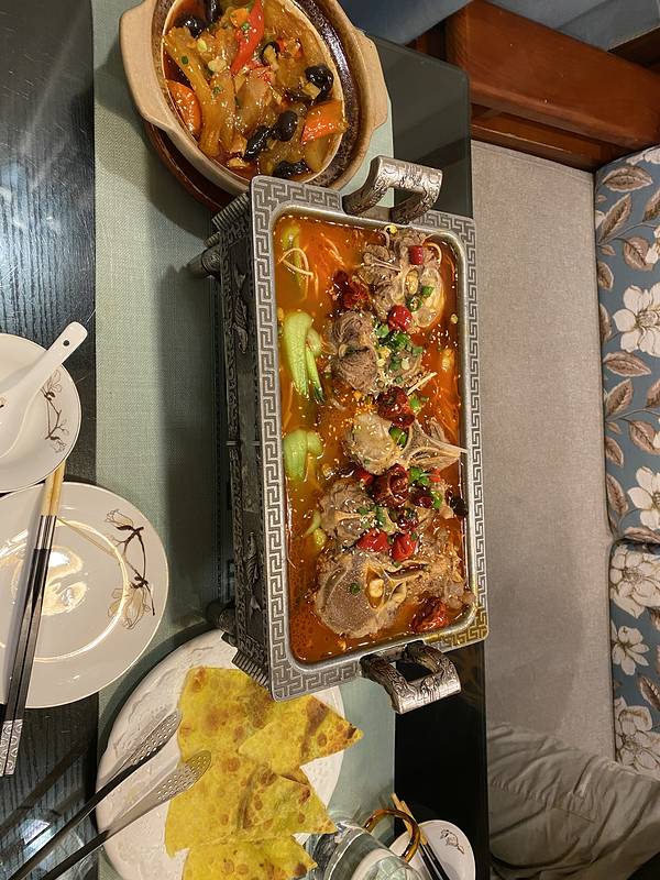 - 炕羊肉里的土豆还挺好吃的,羊肉就一般了,没有内蒙古吃过的羊肉嫩;秘制大骨的骨髓比较好吃,牛肉有些难嚼