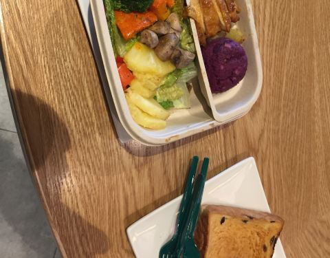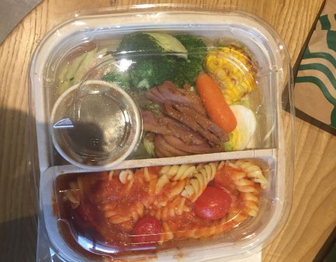 今天来到位于南开区北马路127号富力广场1层的星巴克,点了他家的红茶拿铁咖啡,金枪鱼帕尼尼,还有蛋糕甜品,这份盒饭还是不错的,有青菜,还有鸡蛋,加热后吃味道不错,还有意大利面、真棒!挺喜欢在星巴克吃东西的!