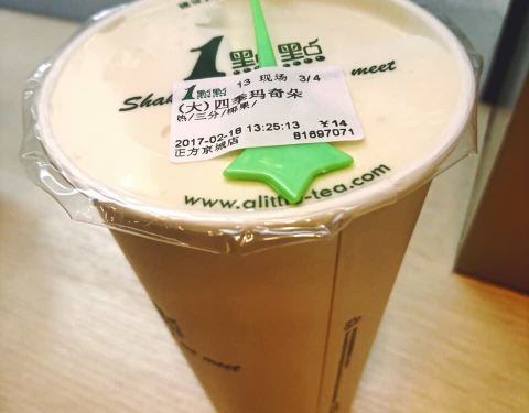 想去喝奶茶,正巧看见的是1点点,只能1点点了。 人气很旺的店铺,不远的超级奶爸还是什么店就不行了,人都没有,可见一个品牌深入人心或者混个眼熟是很重要的存在。