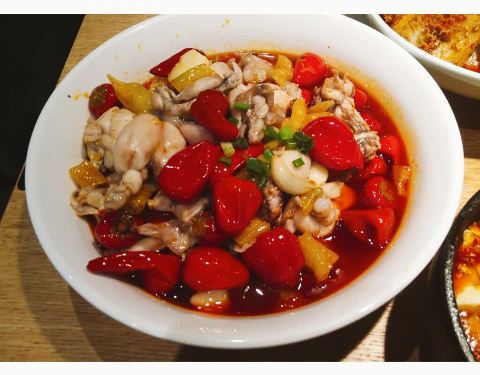金牌酸菜鱼份量很大,等了很久,服务员说鱼也是现杀的,这也太夸张了吧。等了许久上上来之后,尝一口真的很咸,很明显是腌制过后的鱼片,一点不像现杀的。味道倒是还不错,一份99,偏贵,但要说与其他遍布大街小巷的酸菜鱼比,有什么区别,那就是鱼的品质好。