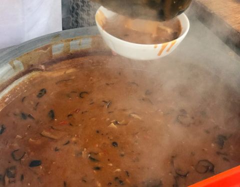 浓稠的口感和胡椒、陈醋搭配起来绝对是重口,牛肉、香菇、面筋、木耳、枸杞加入其中,营养丰富又好吃...
