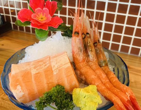 很棒的一家餐厅 在二条市场内 所以食材都非常新鲜 刺身很新鲜 三文鱼是厚切的 甜虾也很大 串烧一溜排