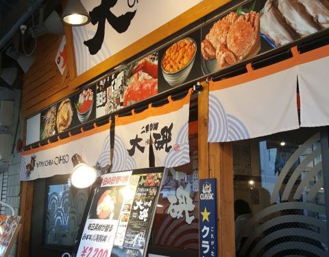 位于二条市场周边跟二条市场隔了一个巷子,大矶是我看了网路上有人推荐去的,推荐人是说他家的价位比较高,因为用了品质比较高的海鲜,我想吃看看品质较高的海鲜是怎样,于是就去囉。大矶内部空间比较宽敞,我很...位于二条市场周边跟二条市场隔了一个巷子,大矶是我看了网路上有人推荐去的,推荐人是说他家的价位比较高,因为用了品质比较高的海鲜,我想吃看看品质较高的海鲜是怎样,于是就去囉。大矶内部空间比较宽敞,我很喜欢他的榻榻米座位区,海鲜丼饭的海胆确实是我来北海道这麽多次吃过最鲜甜的。