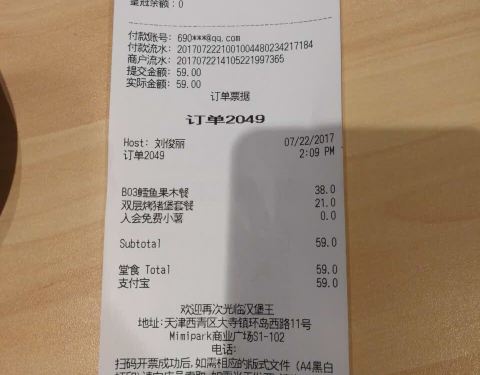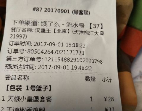 到家之前点上,没多长时间就送到,也就20分,配送小哥真的很给力,味道不比现场吃的差!汉堡王家的汉堡真心比麦当劳肯德基好吃,薯条也粗好吃