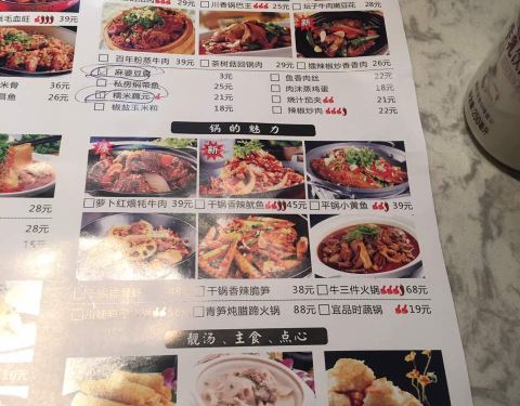 宜品川CBD店应该算是装修比较新的一家店 风格略微复古 整体搭配不错 不过比较嘈杂 客人一多 服务员就有点手忙脚乱了 也比较吵菜品种类更替了很多 最爱的沸腾虾早就看不到踪影了 问服务员也是一脸茫然 难道是我太久没去了嘛……水煮鱼很棒 鱼肉很嫩 入口微麻然后慢慢辣味出来 搭配的豆皮苕粉莴笋丝也不错 不过再多一些莴笋丝会更棒 因为很鲜脆可口 可以中和一下辣味很喜欢干锅排骨虾 算是中辣加上一点孜然 然后还有一点点洋葱的甜味 虾皮炸的很酥 但是虾肉却不干柴 排骨很软嫩 一口咬下去还有肉汁 口腔的回味很棒 搭配了炸过的莲藕片 让我不吃藕的人也吃了几片 比较脆但是却不干 还可以吃到藕的甘甜但是在服务员的热情推荐下硬生生的点了酸辣紫菜苔 说是当季菜 然而并不好吃:(略微坑爸爸 味道太太太一般 一般到都没吃几根 可能是我不懂欣赏并不能品出它的美味以后都不会再点了╮(╯▽╰)╭至于消费的话 表示除了干锅排骨虾性价比比较高 其他的水煮鱼估计是招牌所以定价略高于菜品价值本身 至于紫菜苔 简直不想多说 总体不错