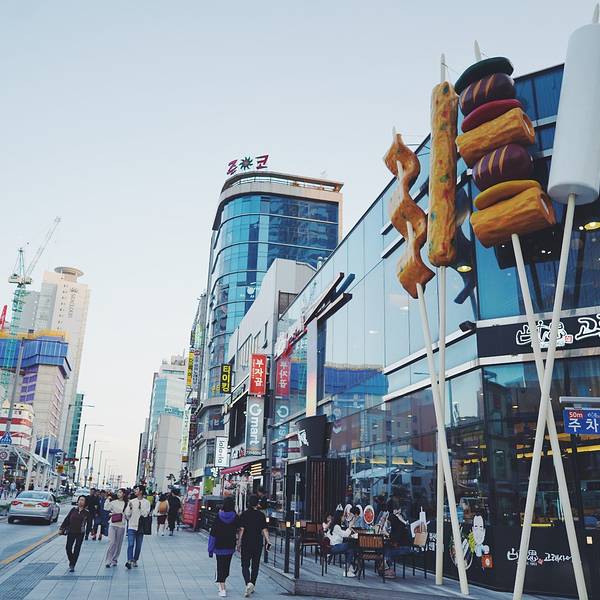 好吃的鱼糕店 鱼糕是釜山当地,特别有名的小吃,在这里卖鱼糕的店特别多,其中有一家叫古莱斯的鱼糕店,是其中比较有名的。他在很多地方都有连锁商店,你只要看到他们家的店头,有插着几根巨大的鱼糕模型,就是...