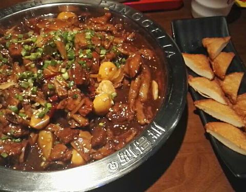 之前在武汉吃过还不错,尤其喜欢吃他们家的鸡爪,特别软特别入味。位置在定海凯虹广场,挺好找的。快速公交1号线,在檀枫新苑下车。小贴士:中国银行信用卡,周日有满200减100的优惠。 服务开业搞活动服务下降是可以理解的,等位等得久是可以理解的,但是等位要和大妈们吵也是服气。取号单明明写着过号作废,商家又说顺延三桌,我可以理解,但总是抵不住过号客人压力尽快安排他们,导致就号久久不动,我就等一个号等了一个小时。上菜很慢,导致我们门口买凉皮吃。 菜品中规中矩,点的大份,和之前小份差不多,全是土豆和豆芽。对了,西瓜汁和米饭不打折,并没有提前说明,宣传单也没有写饮料米饭除外,虽然钱不多,但是信誉大打折扣。菜品总体来说还是挺好吃的。