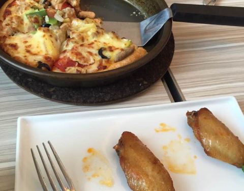 环境不错,服务态度好!披萨和鱿鱼圈小朋友大爱,鸡翅有一点辣,味道还可以。