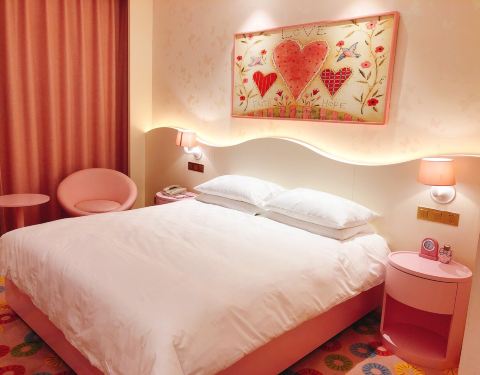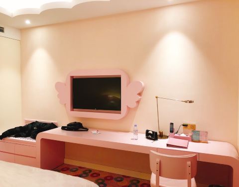 房间粉色,超喜欢,就是有点小。