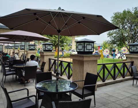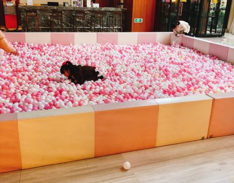 - 由于酒店附近的商业配套还在建设中,基本上就靠这家餐厅解决三餐了,小朋友可以一边玩大堂的海洋球,...