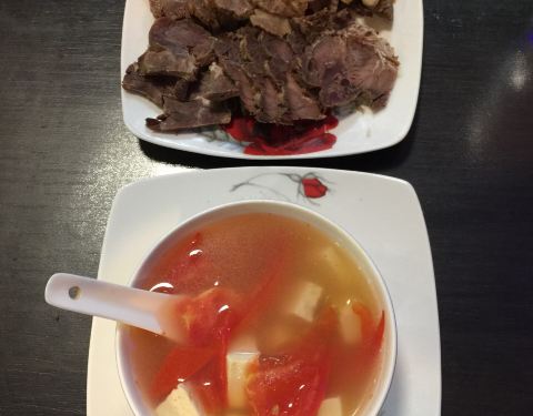 在欧洲游了快十天了,中国胃已经几近疯狂,据说匈牙利菜已经属于欧洲比较适合中国人吃的了,但真的不能忍顿顿牛肉土豆,于是找到了这家,老板娘是福建人,比较和蔼,点了两个凉菜,海带丝和拍黄瓜,还点了小笼包,红烧猪蹄,四川鸡,西红柿鸡蛋汤,紫菜蛋汤,最后还追加了重庆小面。最喜欢猪蹄和重庆小面。猪蹄比较有嚼劲,第二天微波炉转转更加美味了,小面用的是比较粗的面,胜在味道比较有层次。看了店里的照片,很多明星光顾过呢。