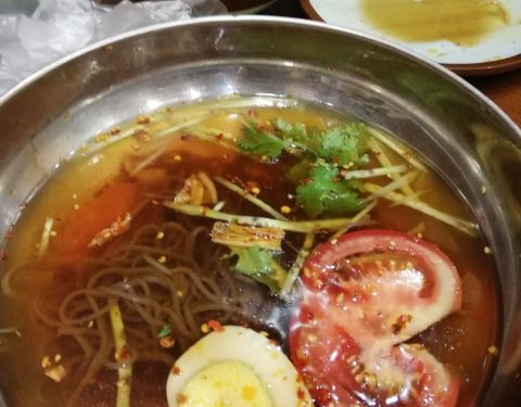 这里人气很旺啊,大概六点多就要等位了~东西挺好吃的,但是稍微有点咸~猪蹄很好吃,有熏酱的味道,又很软烂,个头很大又便宜,我吃个猪蹄就半饱了~花甲金针菇也好吃,酱油筋,冷面都好吃~跟状元阁风格很像,下次还想来的店,就是吵啊~