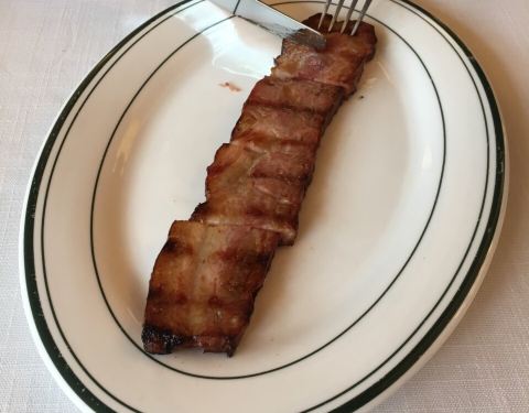 因为在纽约吃过一次,所以念念不忘。发现北京也有,过来拔草。 环境跟NY的差不多,复古的装饰,座位的安排略显紧凑,一水的男服务员。 厚切培根,说实话味道可以,只是跟NY的比还是差点,火候略欠。 比佛利沙...因为在纽约吃过一次,所以念念不忘。发现北京也有,过来拔草。 环境跟NY的差不多,复古的装饰,座位的安排略显紧凑,一水的男服务员。 厚切培根,说实话味道可以,只是跟NY的比还是差点,火候略欠。 比佛利沙拉,特别不推荐,因为不好吃菜叶不新鲜。 西冷五分熟,上来的效果滋滋作响,很完美,味道很棒。 芝士蛋糕,这个简直很赞,和NY的一样一样的,超级推荐,好吃的不要不要的。 还是很不错的体验……值得拔草。