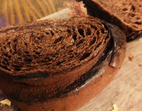黑巧克力牛角 真舍得用料,纯度75%的法芙娜巧克力浓郁醇厚,巧克力口感层次分明。【消费】人均50左右
