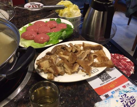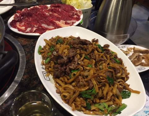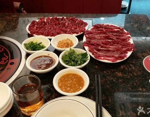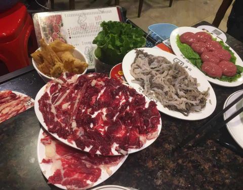 - 肉可以,新鲜,牛肉丸稍微有点酸,去的早不用等位,环境嘈杂,点了几盘肉,吃的爽,湿炒牛河不推荐,难吃