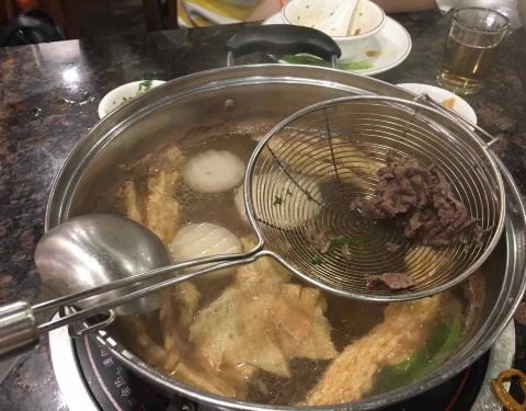 牛肉片都是现切的,厨师刀工了得,每片牛肉都是恰到好处的厚度。
