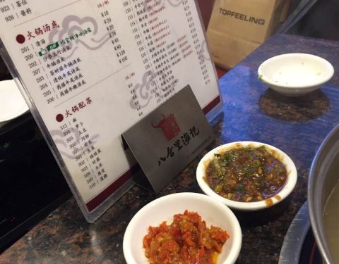 今年来新兴不少牛肉火锅店,八合里海记算是比较早期的店了,人气一直很旺,饭点时间不论中午或是晚上都很多人排队。东晓南分店交通非常便利,地铁东晓南站B出口一出来左手边过对面就是了。这店有两层,环境卫生算...今年来新兴不少牛肉火锅店,八合里海记算是比较早期的店了,人气一直很旺,饭点时间不论中午或是晚上都很多人排队。东晓南分店交通非常便利,地铁东晓南站B出口一出来左手边过对面就是了。这店有两层,环境卫生算一般。 中午11点左右到店人还不多,不用等位。三个人要了清汤底,点了嫩肉、匙肉、牛腩、匙柄、腐皮、手锤牛肉丸、牛百叶。肉类按照菜单上写的时间来涮,嫩肉居然显老,肉质较粗糙,匙肉和匙柄反而嫩滑。牛肉丸则一贯的多汁弹牙,牛百叶鲜味爽口。