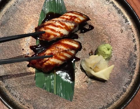 银鳕鱼口感也不错,不过不知道是鳗鱼吃腻了还是怎么的,感觉银鳕鱼有点偏甜。鳗鱼软糯,鱼皮很Q,甜度正好
