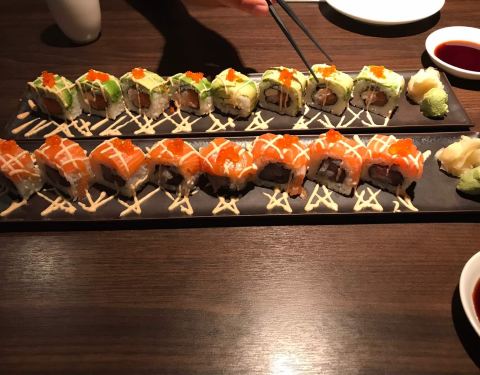 鳗鱼软糯,鱼皮很Q,甜度正好。银鳕鱼口感也不错,不过不知道是鳗鱼吃腻了还是怎么的,感觉银鳕鱼有点偏甜。刺身拼盘很棒,都很新鲜。 2017-07-18 14:00来自携程 网友