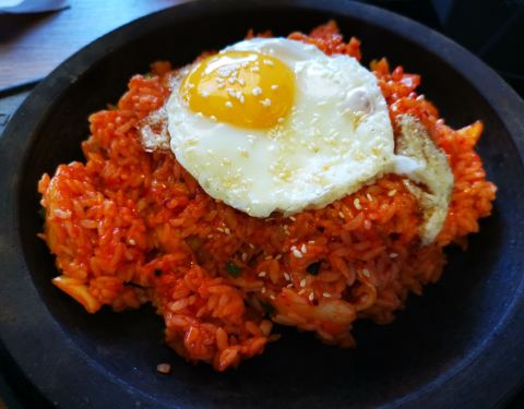 距离单位很近~之前外卖过一次味道不错,比之前在外地吃过的那家好吃太多了~ 趁着中午不太忙,和同事过去打卡~ 我吃辣白菜炒饭,海藻+单份辣白菜。 吃完还要陪着去吃麻辣烫,哈哈哈哈~ 辣白菜炒饭甜甜的适合我口味,单份辣白菜有点咸香的也还不错~