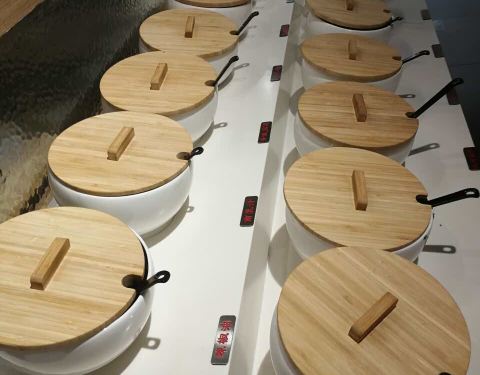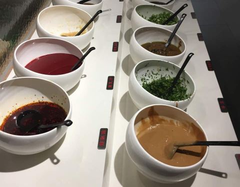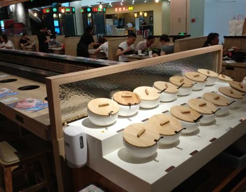 尚街店小料是自助的,很方便。新出的黄金板松肉肉质很嫩,爽口顺滑。赞!环境和服务态度都很好。