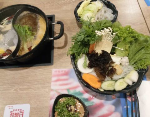 很久很久没有吃呷哺了,这次逛完商场,地下只有他家还开着,就来填饱肚子。锅已经变成石锅了嘛?小料也变成自助了嘛?还是7元钱。不知道什么时候改的,不过麻酱和锅底的味道没变,很欣慰,也不知道哪个好吃了,随便点了几个菜,服务员临下班前会告知顾客收小料了,服务也不错