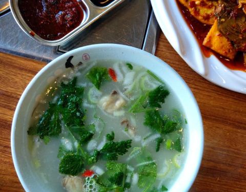 店内座位布局不合理,桌与桌之间距离太近,导致后来的客人和邻桌客人座位不宽敞,而且会互相影响,希望店家能够改进;白米饭3元钱一碗,个人觉得有点贵;室内不禁烟非常不好。总体来说,味道不错,菜量不小,蔬菜拌饭挺好吃的,辣酱不是很辣,略带点甜味;拌牛肚很好吃。黑胡椒牛肉黑胡椒味很足。牛肉饼是圆葱馅的,味道还不错,板栗牛尾有点油腻。牛排锅量挺大,可以自己点菜像火锅那种形式吃。