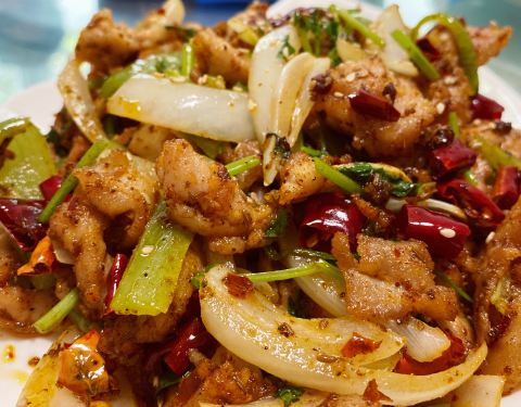 黄花鱼水饺 麻辣豆腐 黄瓜蛰皮 香辣牛板筋 麻辣肚丝 三鲜焖子 鱼香肉丝 锅包肉 老虎菜 酸萝卜炒粉