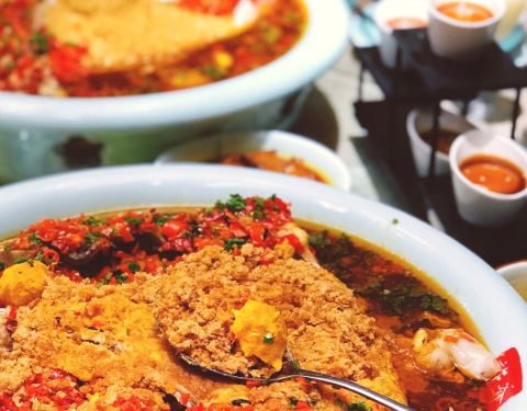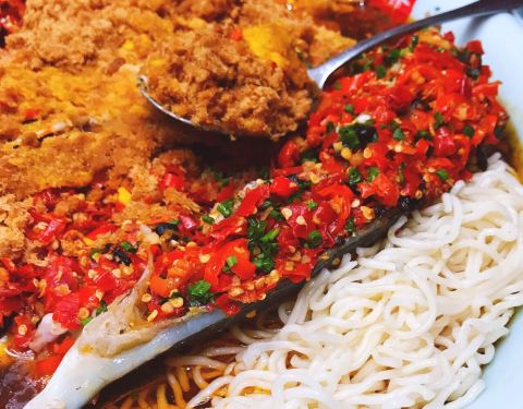 终于拔草小网红!许爷剁椒鱼头[爱心] 咸蛋黄肉松口味,创意分 流沙的微妙口感,满满的胶原蛋白,再配合咸鲜辣的剁椒风味,不可言喻的美味 鱼丸汤也是心头爱,丸子各个鲜味十足,汤头纯正,一连喝了三碗,敲满足