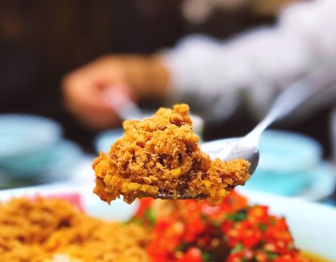 许爷家的剁椒鱼头真心好吃 之前在南京路第一百货那里吃过 觉得味道还不错 今天正好去上师大办事 看到桂林路也新开了一家 貌似还新推出了咸蛋黄肉松口味的 这个听着就很棒啊 赶紧拉着朋友们过去拔草 许爷咸蛋黄肉松剁椒鱼头 个头硕大的鱼头上堆满了咸蛋黄碎和肉松 听说这里面放了整整30个咸蛋黄和无敌多的肉松呢 这种做法的鱼头还真是第一次吃到呢 果然咸蛋黄&肉松和谁都搭 鱼肉鲜嫩无比 蒸的时间和火候掌握的都非常好 鲜辣的剁椒加上鲜香味美的咸蛋黄肉松 妈呀 这个味道真的好吃到爆灯 谁吃谁知道 咸蛋黄肉松制品真的一生推 许爷手打鱼丸汤 里面的鱼丸都是手打出来的 口感鲜嫩Q弹 汤色奶白 味道鲜美 一旁还另外搭配了一些蔬菜 可以自己下锅涮煮 除了必点的大鱼头外 我们还点了一些小菜 小炒肉 婆婆鸡和干锅牛蛙 做的都很入味好吃 点心:糖饺子 糖油粑粑 葱油圈圈 作为一个十足的糯米控 真心爱这些小吃爱到不行 口感个个软糯香甜 糯米控们可别放过它们呀