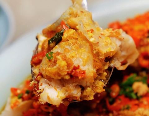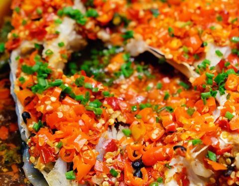 - 鱼肉鲜嫩无比 蒸的时间和火候掌握的都非常好 鲜辣的剁椒加上鲜香味美的咸蛋黄肉松 妈呀 这个味道...