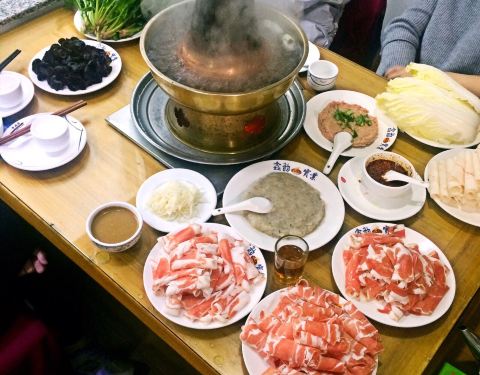 下雨天跟会计和翻译来吃饭 点了好几样店里特色 鲜韭花酱挺好 芥辣丝是免费不限量的 也挺好 王哥庄大田菠菜一致好评 这才是红嘴绿鹦哥的好菠菜 店里酱料比较简单 寥寥几种 除了一人一碗花生酱是从厨房端出来发到手上的 其他都在酱料区 我不爱花生酱 如果是搭配了芝麻酱或许会好很多 为了多吃几样特色肉 全都要的小份儿 高钙肉和太阳卷儿一致好评 点了碗现泼油辣子 香辣得很 她俩嫌羊尾油纯脂肪 每人勉强吃了一小口 剩下的都我吃了 店里供白水 我自带了小青柑泡来喝 多亏从头到尾喝了小青柑 有很好的清肠解腻的作用 因为这顿的油水实在是太大 当时吃完不到10分钟就进了店门外的洗手间排了大半出去 也算是舒坦 当晚没吃饭 在朋友店里喝了一下午的马黛茶继续清肠排油 又是一顿上吐下泻 把在这里吃的全排出来了 估计就是花生酱和羊尾油把我拿下了 不过对老板娘和为我们服务的小姑娘充满好感 服务没话说 手动点赞