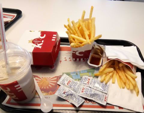 还行吧,点餐下单动作挺快的,直接扫码,方便。已经吃过好几次了,可乐,薯条,汉堡,工作午餐没办法,赶时间,有的时候再来一桶鸡翅下午茶时间吃。
