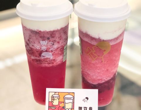 - 点了网红茶品芝芝莓莓,好喝,灵感之茶,的确有灵感。排队点餐半小时,取茶又等半小时