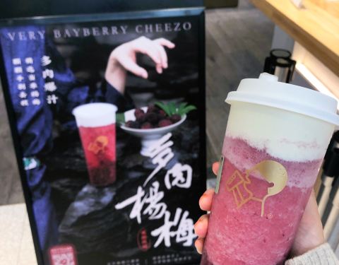 奶盖搅拌后一起饮用口感更丰富呢~杨梅肉很新鲜很多汁,一杯下去好解渴!新上市的,和小伙伴一人来一杯
