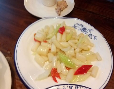 餐厅在海洲国际大酒店对面,离寨西换乘站不远。装修风格看上去挺高档的,服务也很好,上菜速度快。菜品味道好。 蒜香马兰头,据说是黄山特有的野菜,味道还可以,虽说是野菜,但不难入口。 野菌炖土鸡,用金针菇煲土鸡汤,鸡汤味道还不错,比较清香,但鸡油比较多。 西芹炒藕尖,味道酸酸辣辣的,酸辣味道刚好,藕尖比较爽脆可口,不错。