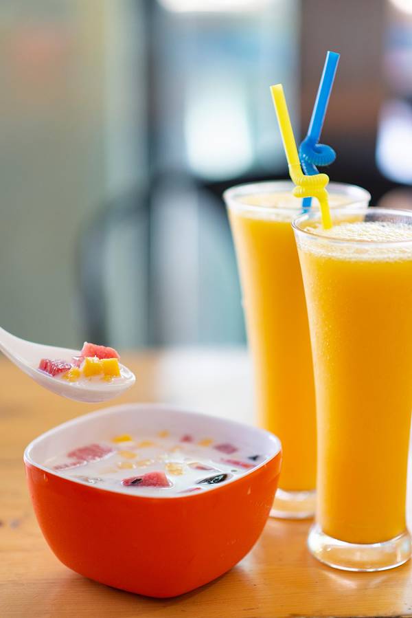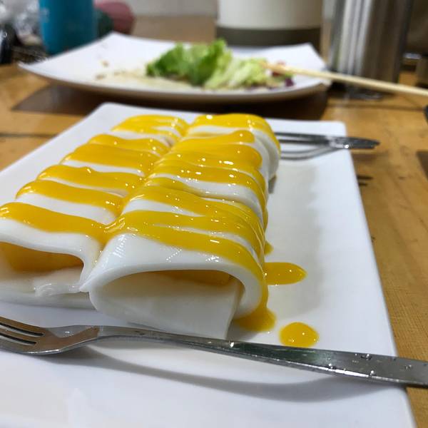 位于蜈支洲岛旁边的村子里网红菠萝饭冲浪鱼,好吃好吃招牌芒果肠粉椰奶清补凉,芒果椰汁西米露