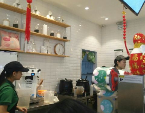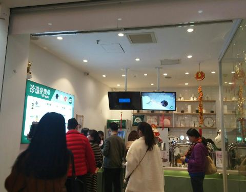最近很偏爱珍宝宝,一来中华城就来打卡[馋][馋][馋] 【位置】中华城北区一楼 【环境】临近春节,店里洋溢着节日的气息,绿色的装修风格与店里主打膳食纤维主题相得映彰,店面门口有不少桌椅,很适合堂食,每次过来都要排队[捂脸][捂脸] 【美食】抹茶欧蕾:鲜纯的牛奶,既健康又好吃的珍珠(还是免费的哦),喝前搅拌,抹茶味浓郁,让人欲罢不能[色][色] 鲜芋牛奶:浓郁的芋香,绵绵的芋头配上草莓珍珠,口感适中,又能促进消化,值得推荐[色][色]